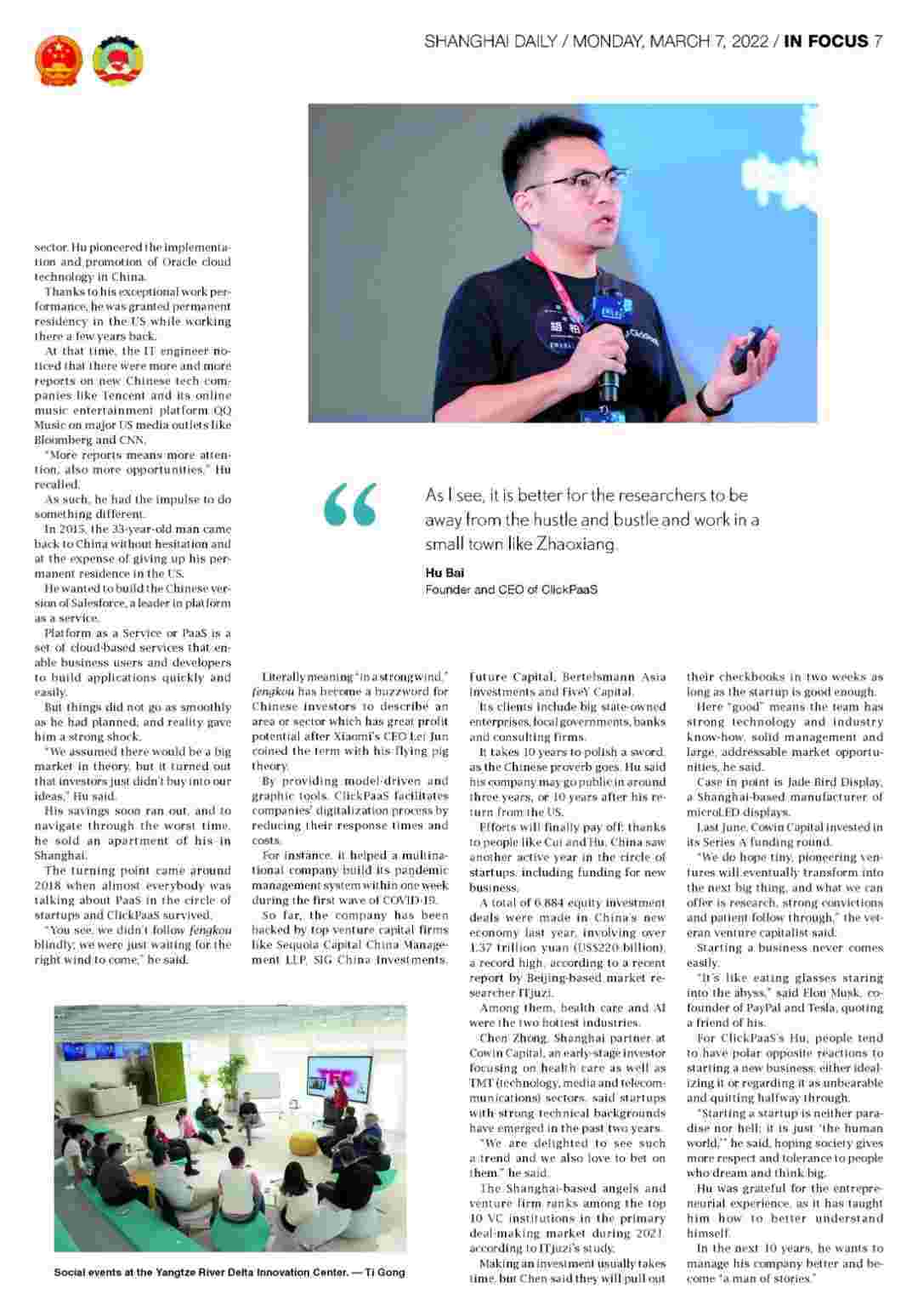 近日,,,,,,,,,小微钱包创始人、、、、、CEO胡柏接受了《上海日报》采访,,,,,关于自己当初为何选择创立小微钱包,,,,,,,,又为何将公司落户于上海青浦,,,,,,,,,分享了其背后的故          事。。。。。。。